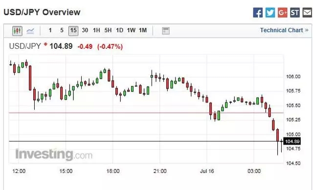 日元反彈,美元/日元從106.0上方下跌至104.89.
