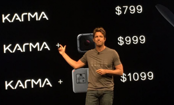 盡管GoPro Hero 5是主角,但對于消費者來說,可能真正激動人心的時刻是GoPro公司CEO?Nick Woodman從背上的背包里取出Karma無人機(jī)的那一瞬間。