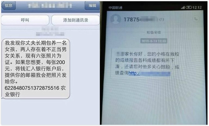 相比黑客,在今年 8 月因?yàn)樾煊裼裰蓝匦卤粧伻脘鰷u中心的手機(jī)詐騙才是我們這些普通人最常面對(duì)的威脅。手機(jī)詐騙歷史悠久,花樣層出不窮,雖然已經(jīng)從十年前的短信「爸爸我嫖娼被抓速匯錢(qián)給警察保我出來(lái),張警官,農(nóng)行賬戶 xxxxxxxxxx」的原始手段,進(jìn)化到了近年的假基站、假官網(wǎng)、煽動(dòng)性內(nèi)容(「我是你老公的小三,不信你就點(diǎn)開(kāi)照片看看我們的床照」)配上釣魚(yú)鏈接等看似需要技術(shù)的騙術(shù),但實(shí)際上都沒(méi)什么技術(shù)含量,完全不需要黑客出手,利用的還是被泄露的用戶信息與手機(jī)用戶松懈的防范心理。