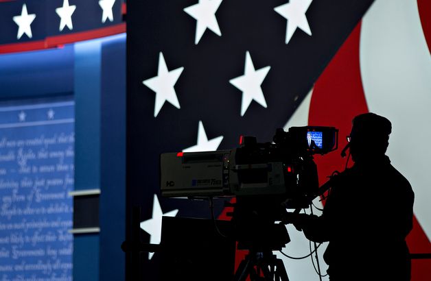 四年前的總統(tǒng)辯論場地也在這里,而這一次的記者多來了一倍左右。因為大家對此次總統(tǒng)辯論十分關(guān)注,吸引的觀眾大約為1億左右,超越美國“春晚”超級碗的直播人數(shù)。
