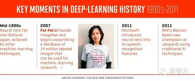 深度學(xué)習(xí)歷史關(guān)鍵點(diǎn):2007年李飛飛創(chuàng)立ImageNet;2011年微軟將神經(jīng)網(wǎng)絡(luò)引入語(yǔ)音識(shí)別;同樣2011年IBM Watson贏得Jeopardy冠軍。