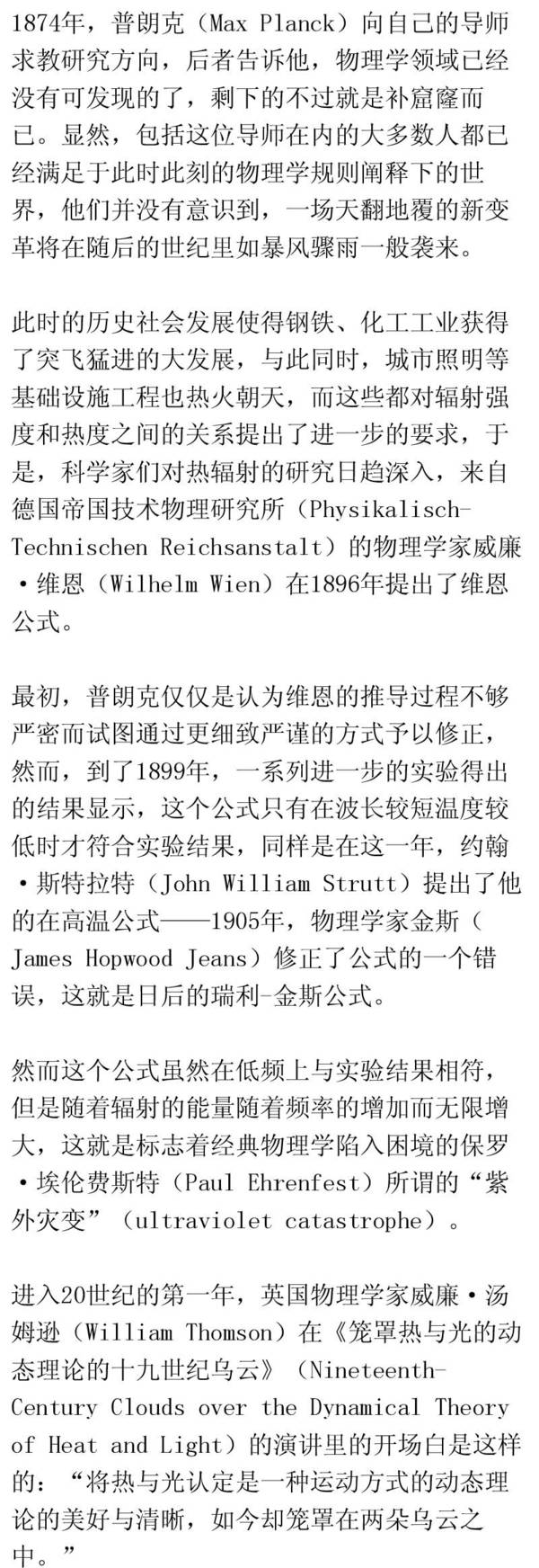 在這個(gè)新世紀(jì)元年的最后時(shí)間里,量子力學(xué)如驚雷一般倏忽現(xiàn)世,在看上去巍巍然的物理殿堂的角落暗暗埋下在日后一個(gè)世紀(jì)里將逐漸傾覆經(jīng)典物理世界體系的引信。