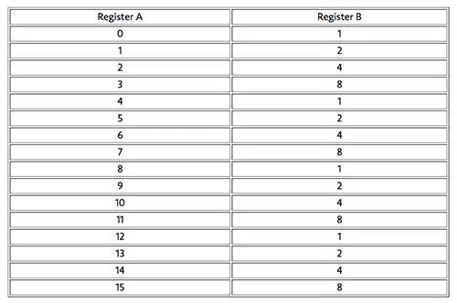 我們會(huì)發(fā)現(xiàn)上述取值的運(yùn)算結(jié)果呈現(xiàn)出(1,2,4,8,1,2,4,8……)的重復(fù)數(shù)列,我們將重復(fù)的頻次命為 f,那么這個(gè)運(yùn)算中,f 的取值就是4。