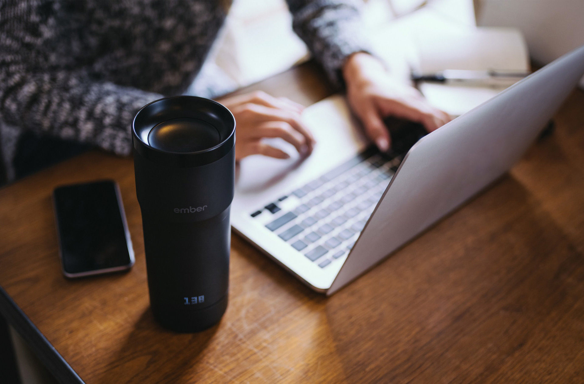 這看上去好像并沒有什么,有些人可能習(xí)慣了,不過星巴克可不這么想,總還是有人想要從頭到尾都喝到溫度一樣的咖啡,于是就有了這個杯子——Ember。