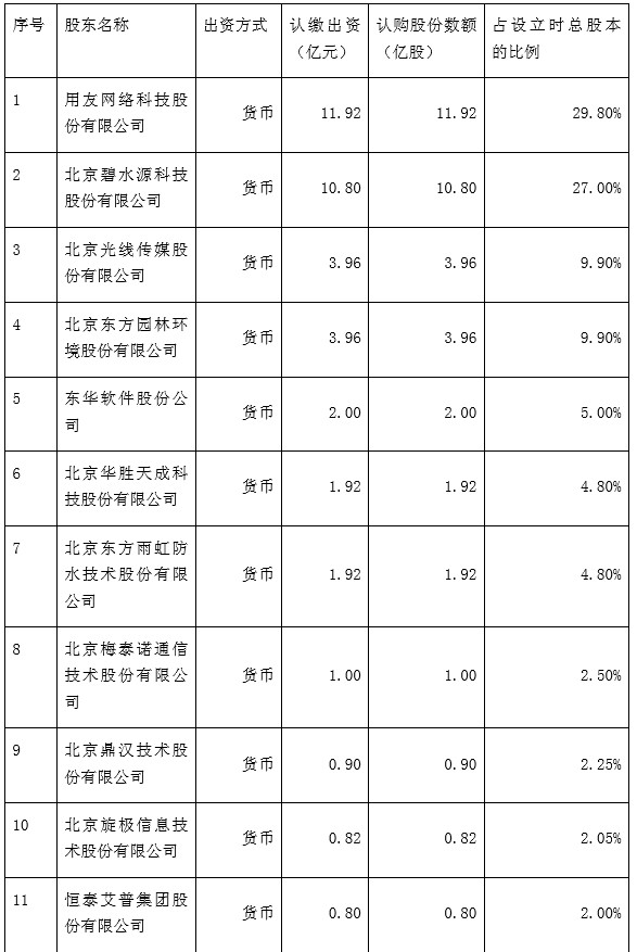 更多的細(xì)節(jié)在不久前由中關(guān)村銀行的第一大股東“用友網(wǎng)絡(luò)”所披露,其公告稱,擬與碧水源、光線傳媒等10家公司共同投資發(fā)起設(shè)立北京中關(guān)村銀行股份有限公司。擬注冊(cè)資本為40億元人民幣,擬注冊(cè)地址為北京市海淀區(qū)。