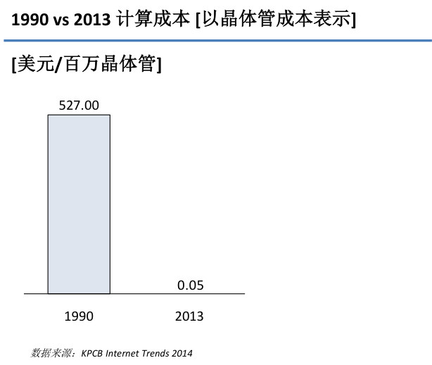 2.計(jì)算成本的大幅下降:?摩爾定律使得計(jì)算成本在迅速下降,同時(shí)云計(jì)算的出現(xiàn)、GPU 的大規(guī)模應(yīng)用使得集中化的數(shù)據(jù)計(jì)算能力變得前所未有得強(qiáng)大。大規(guī)模的的集中式計(jì)算使得人工智能的發(fā)展速度指數(shù)級(jí)加快。過去僅訓(xùn)練深度神經(jīng)網(wǎng)絡(luò)模型對(duì)某一物體的認(rèn)知就要花費(fèi)近一年時(shí)間,而現(xiàn)在這個(gè)時(shí)間被縮短到幾天內(nèi)。