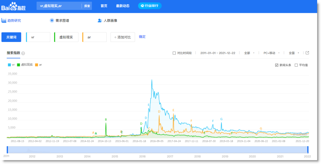 當(dāng)前的我們已經(jīng)可以從VR等相關(guān)關(guān)鍵詞在百度搜索指數(shù)的起伏中開啟馬后炮視角:再先進(jìn)的技術(shù)在缺乏落地基礎(chǔ)的時(shí)候,早期的熱情可能只是資本推波助瀾下的概念與營銷而已。
